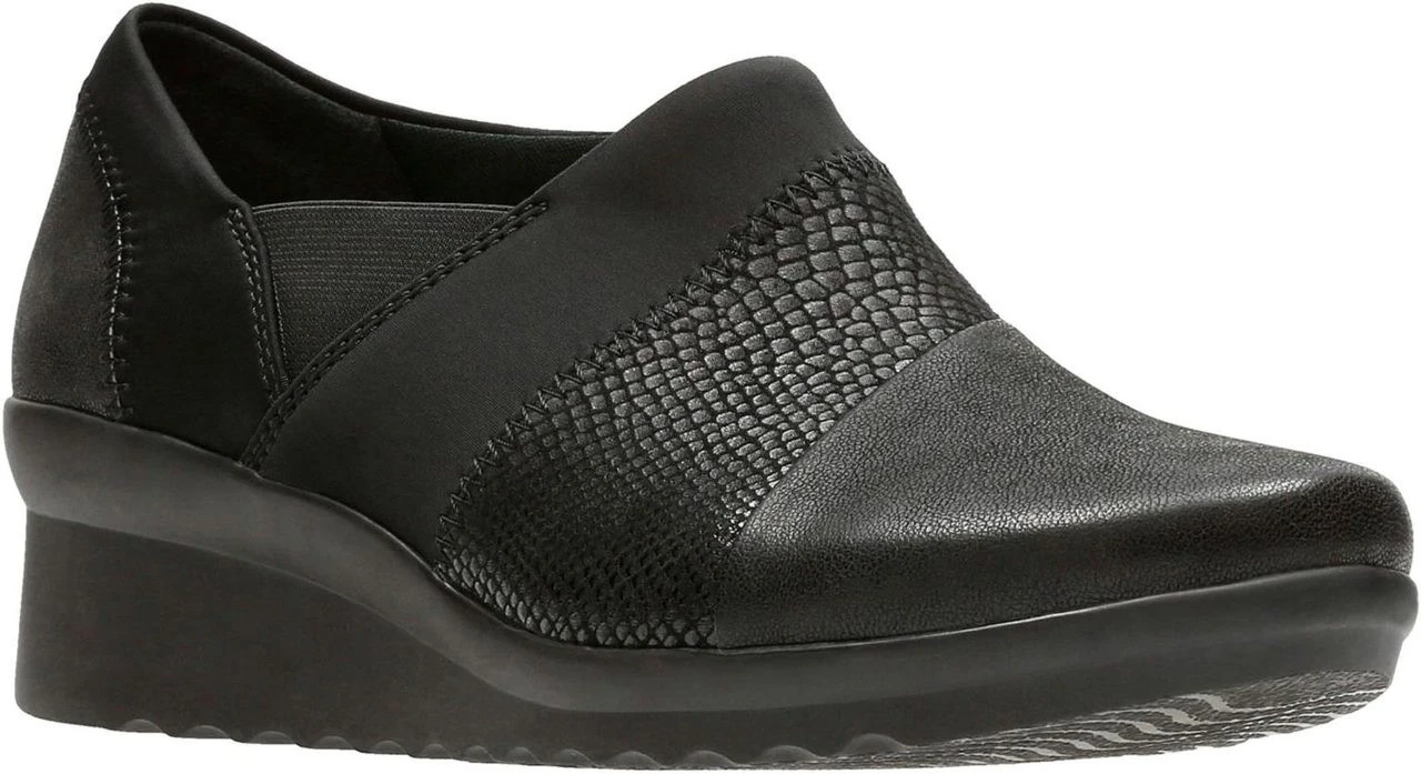 Englin’s Fine Footwear presents the women’s ‘Caddell Denali’ from Clarks. This style brings modern style to new levels of comfort. The streamlined design of its upper showcases a vibrant snake print, and its wedge heel provides a subtle height boost without adding a challenge. As a Cloudsteppers™ style it benefits from Clarks Cushion Soft™ padding and a breathable, moisture-wicking OrthoLite® footbed.