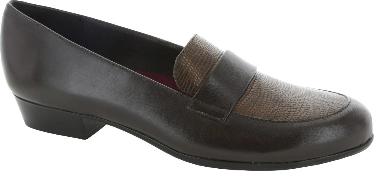 Englin’s Fine Footwear presents the ‘Kiera’ from Munro.ย The Kiera is a tailored loafer with a smooth sheep-leather folded penny strap and printed calf-leather moc plug. Pair the Kiera with dress slacks or make your fashion statement by wearing this comfortable loafer with the designer clothing in your closet.