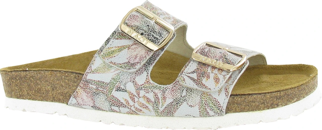Englin’s Fine Footwear presents the women’s ‘Santa Barbara’ from Naot. The Santa Barbara is a classic everyday slide. This style features two buckle closures for complete adjustability. Naot’s anatomic cork & latex footbed is wrapped in a pampering suede and molds to the shape of the foot with wear. The Classic Collection features a 1.25″ EVA sole.