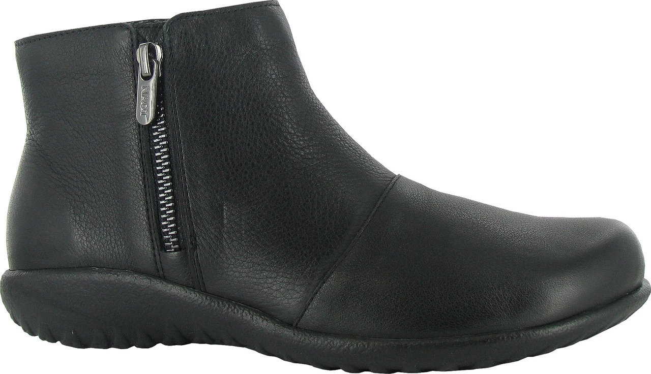 Englin’s Fine Footwear presents the women’s ‘Wanaka’ from Naot.A stylish bootie. The Wanaka has removable cork and latex footbed and features double zippers for an easy slip on. A 1″ polyurethane sole which is extremely lightweight, durable & slip resistant. This collection uses a hand-sewn Strobel construction making it strong and extremely flexible.