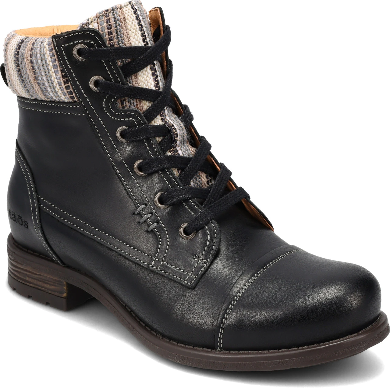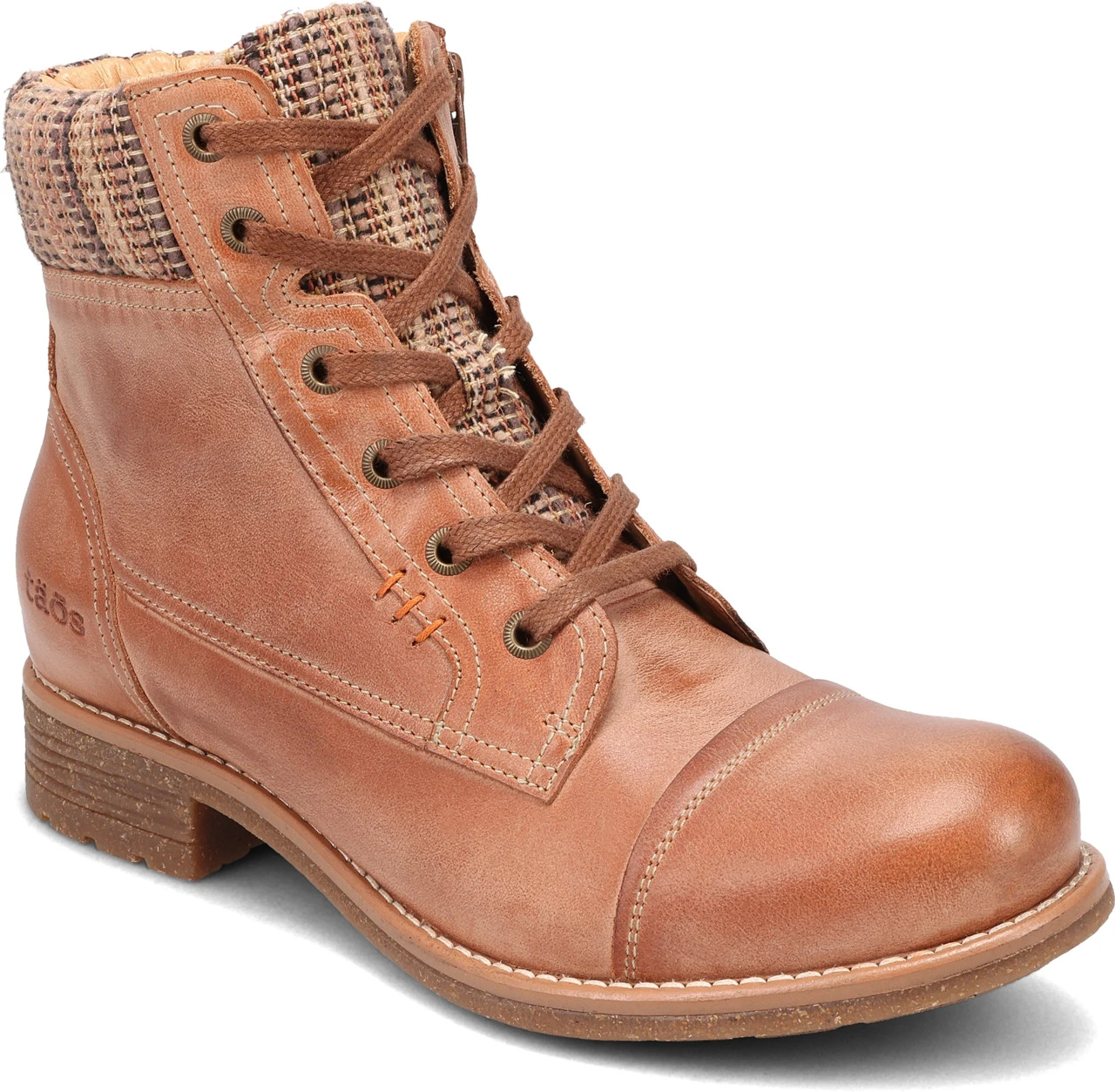 Englin’s Fine Footwear presents the women’s ‘Captain’ from Taos. Captain is a new European cap toe boot from Portugal that has a distinct look with rich leather uppers & woven textile trim. Lace up adjustability along with an inside zipper, make these easy on/easy off. The ultimate footbed that is leather covered dual density polyurethane with arch & metatarsal support for all day comfort. the durable, flexible rubber outsole provides stability as well as durability for all of the places Captain will take you.