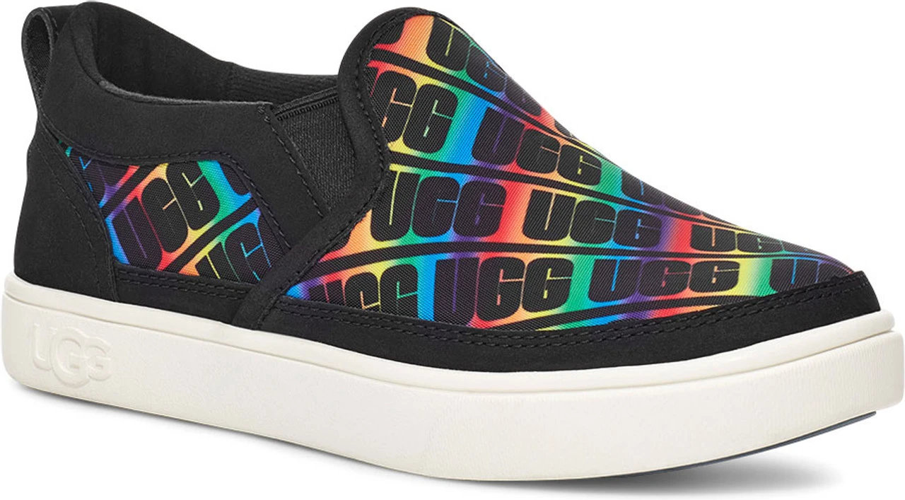 Englin’s Fine Footwear presents the kid’s ‘Caplan Slip-On UGG’ from UGG. With its lace-free convenience and elastic gore flex, our Caplan slip-on is the quintessential kid shoe for summer. The updated skate-style silhouette features an open-cell EVA foam insole for breathable, moisture-wicking, antimicrobial cushioning. Adding molded rubber outsoles for grip and durability, you can take the Caplan virtually anywhere. Wear it with everything from cargo shorts to faded jeans to swim trunks.