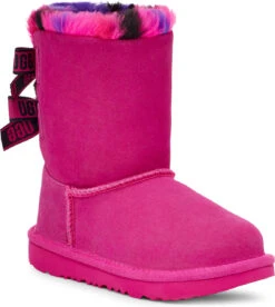Englin’s Fine Footwear presents the children’s ‘Kids Neumel Platform’ from UGG. Reimagining the timeless chukka for a bolder look than ever before, this Neumel reaches new heights with a leg-lengthening 1.5″ platform – offering easy on and off with hook-and-loop straps. Crafted rich suede, it’s lined in the iconic sheepskin with an UGGplush™ insole for signature softness. Pair with the matching women’s boot for cute mini-me photo ops.